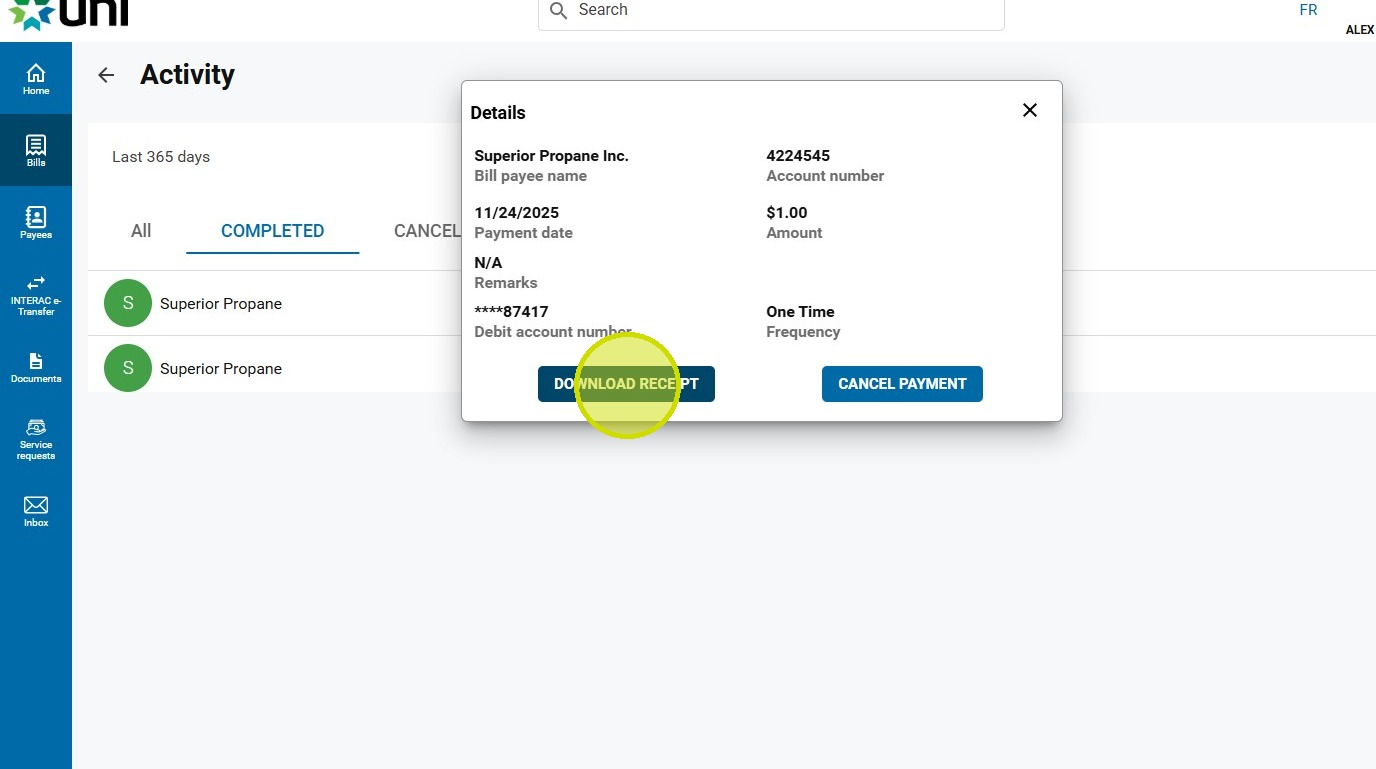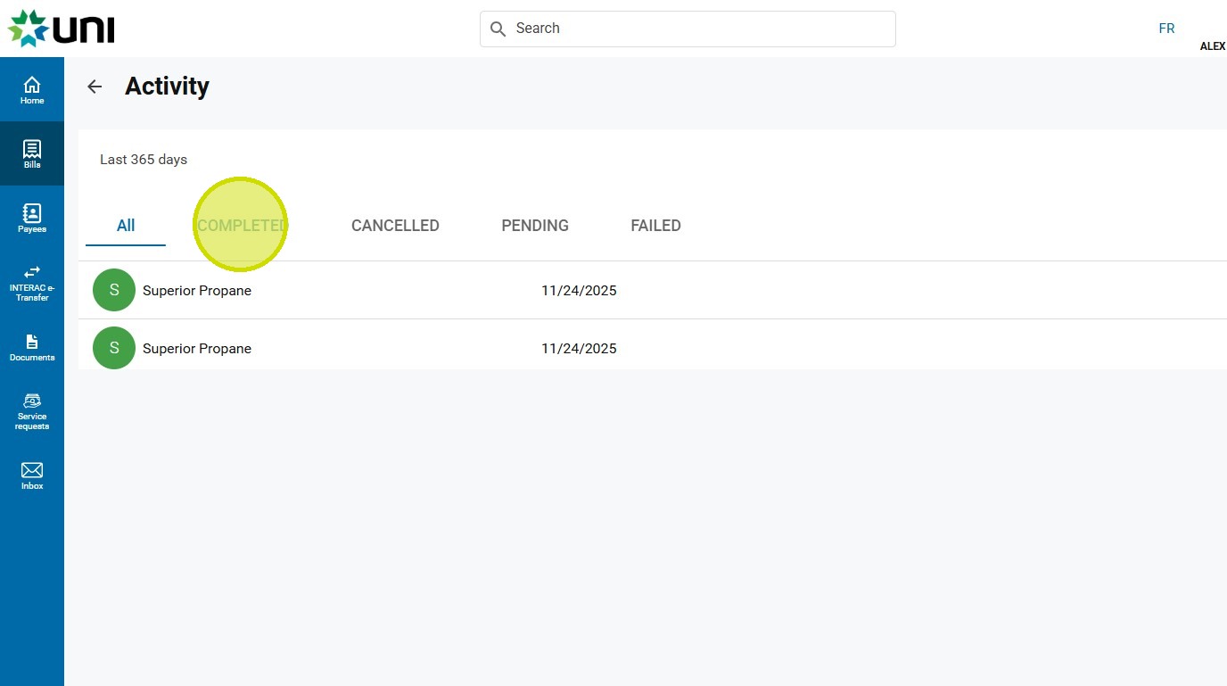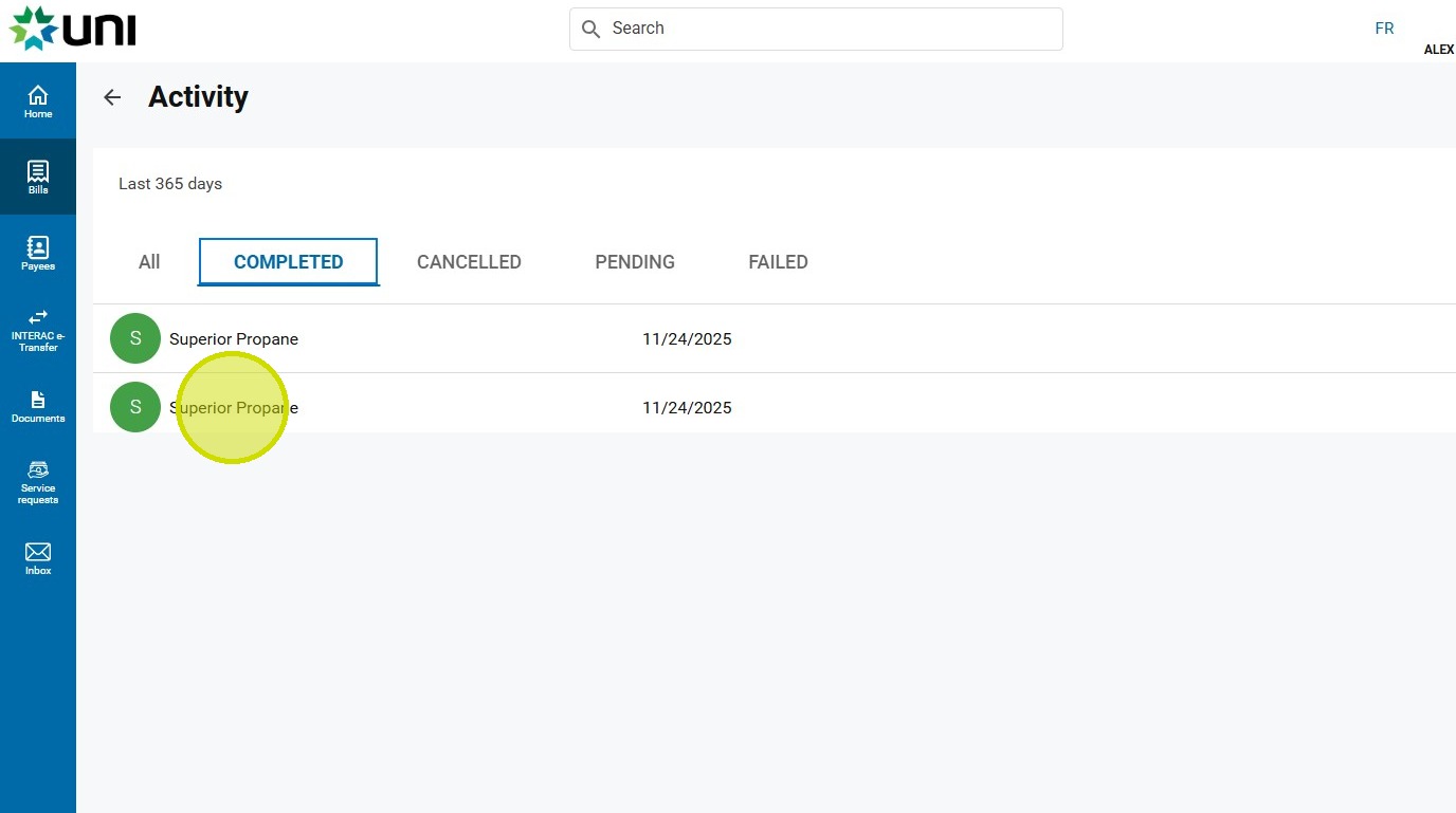 5. Click on the desired bill payment.