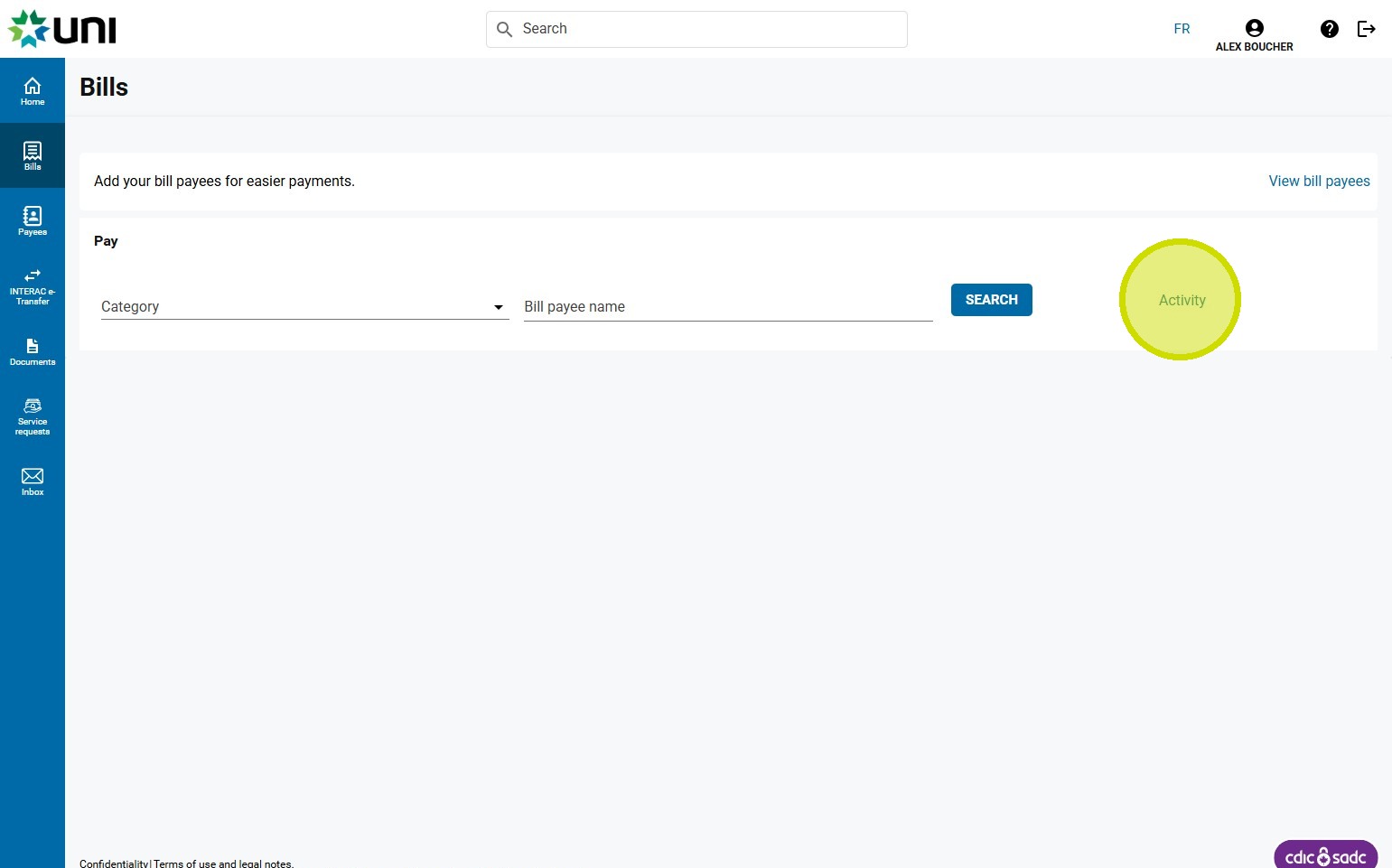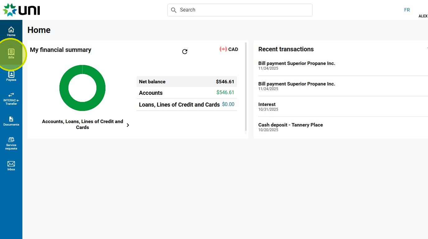 2. Click on Bills.