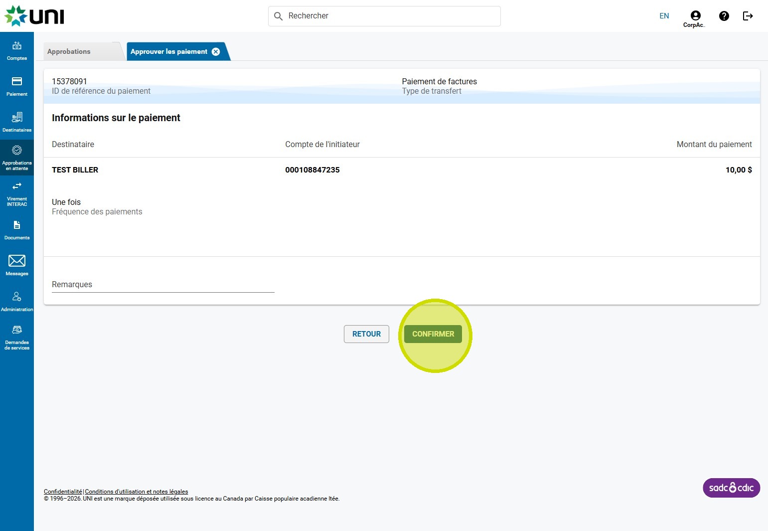 10. Cliquez sur CONFIRMER.