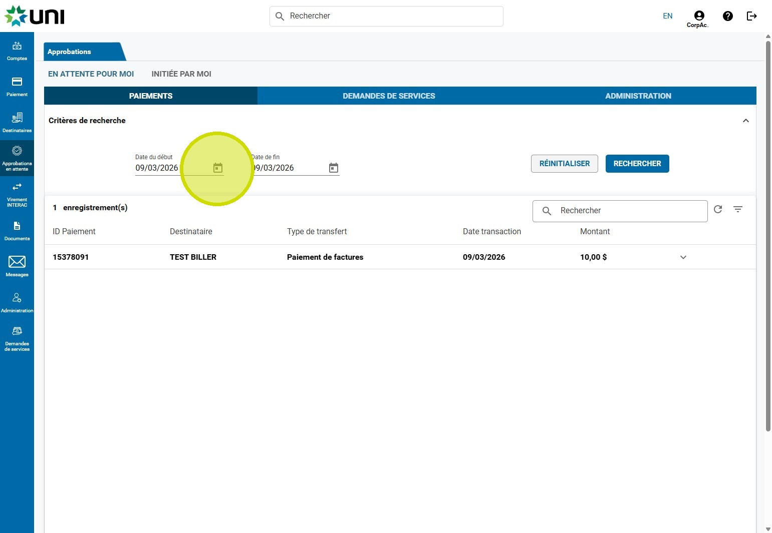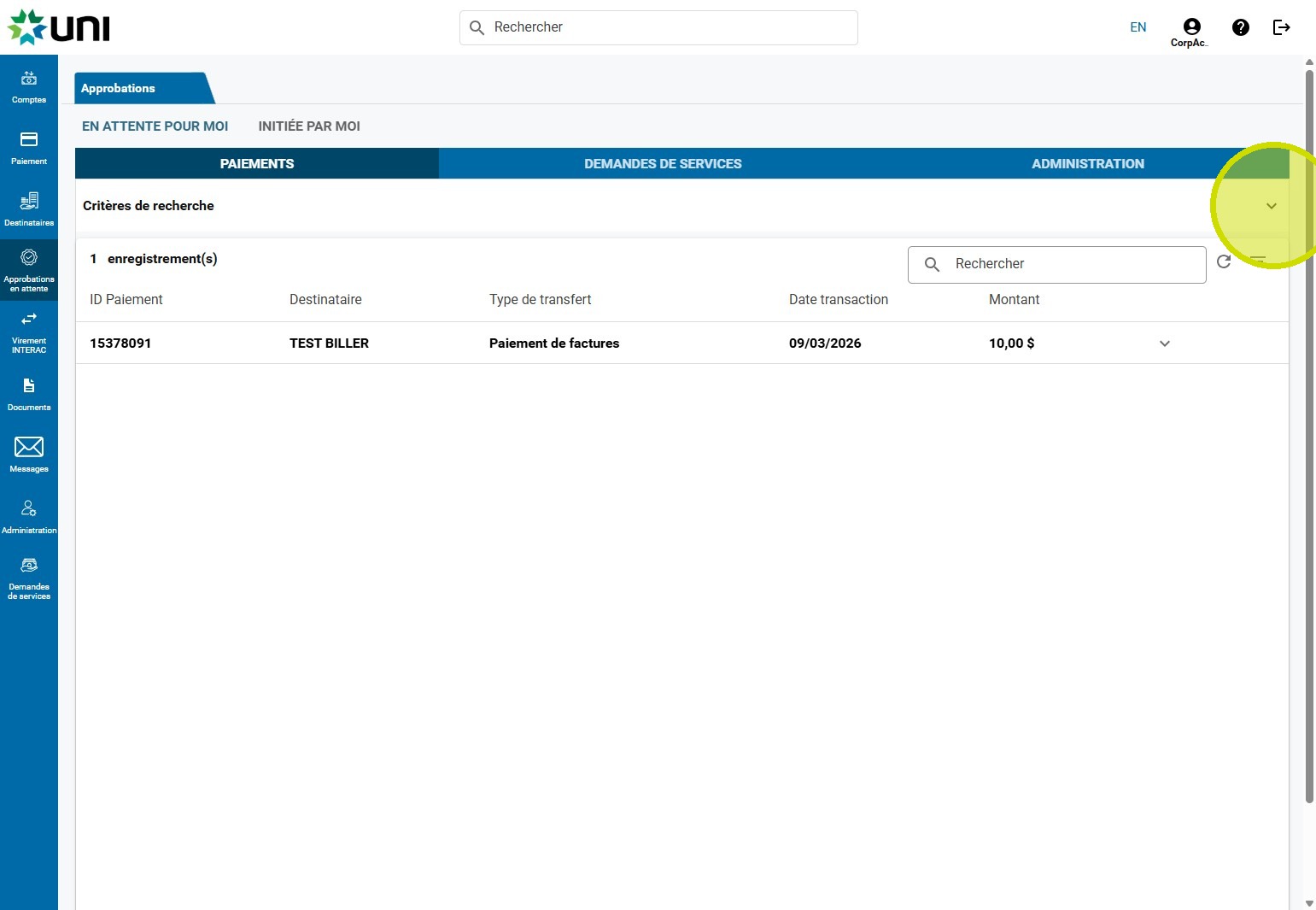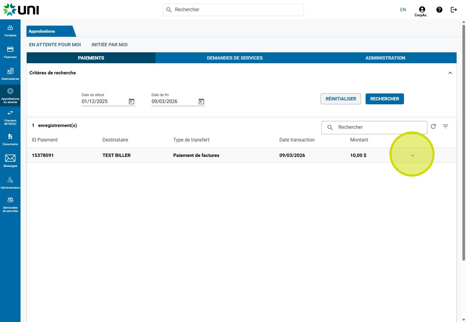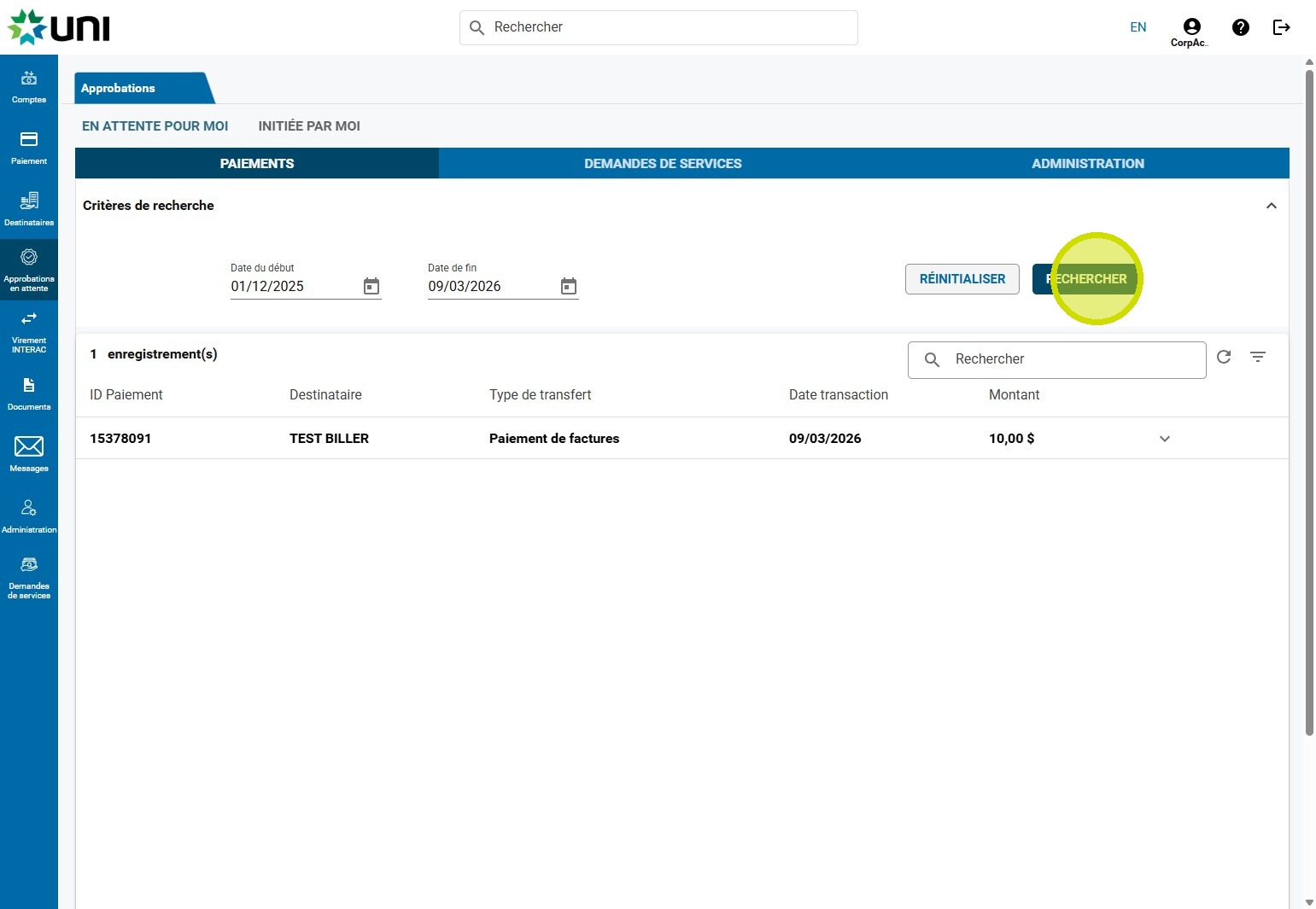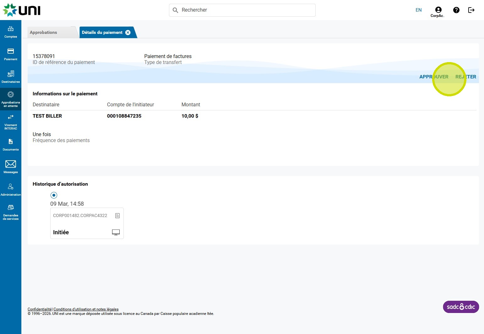 9. Cliquez sur APPROUVER ou REJETER.