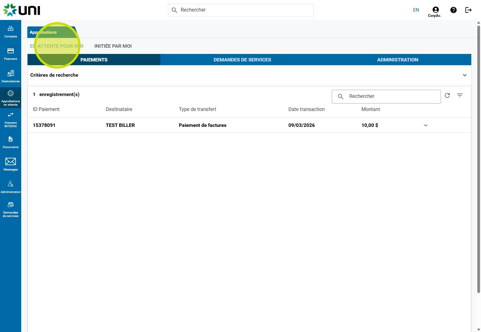 3. Cliquez sur EN ATTENTE POUR MOI.