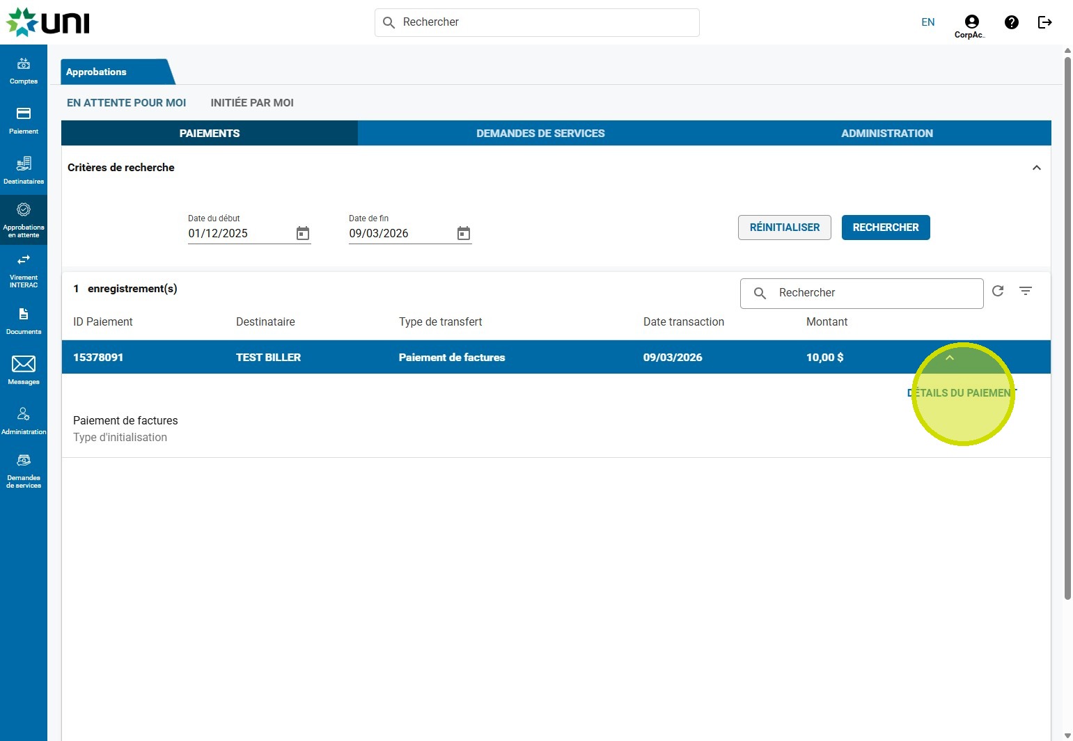 8. Cliquez sur DÉTAILS DU PAIEMENT.